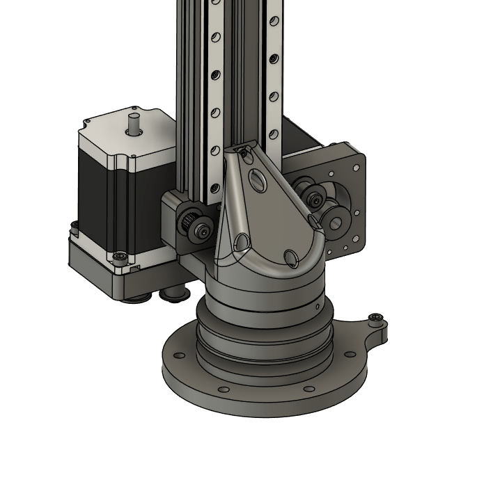 Take the 350mm 10mm width GT2 Closed loop belt and slip it over the J1 Flange Base Mount, then tension it by sliding the J1 motor plate and tightening it down