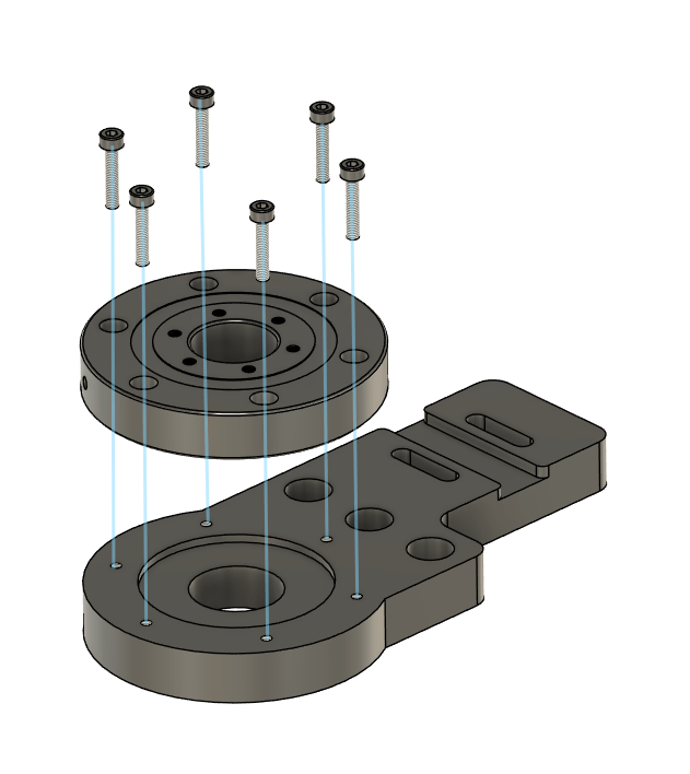 Take the Flange base Mount and add 1x M5x8 Socket Head bolts