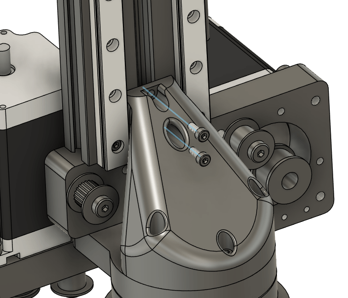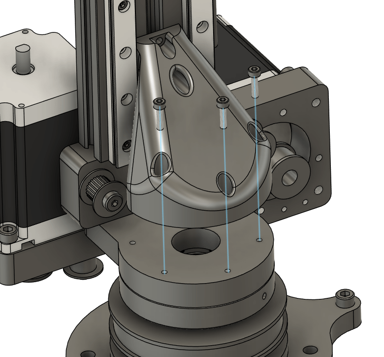 Take 2x M3x8 socket heads, loosely attach the J1 to J2 Brace to the J2 Vertical Rail.