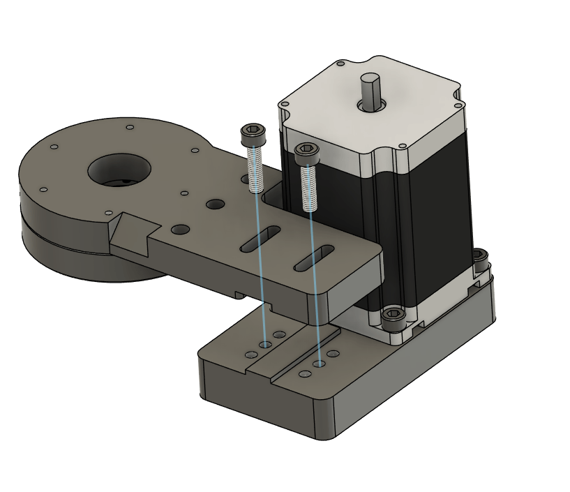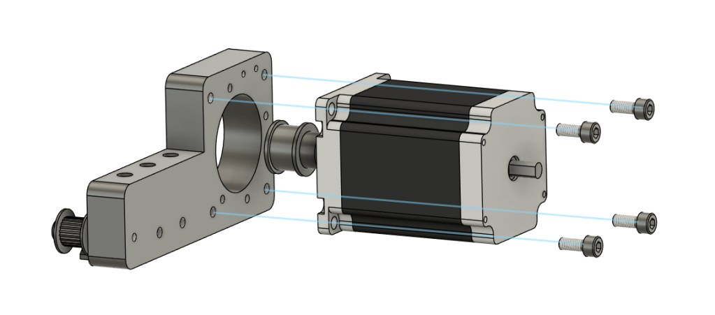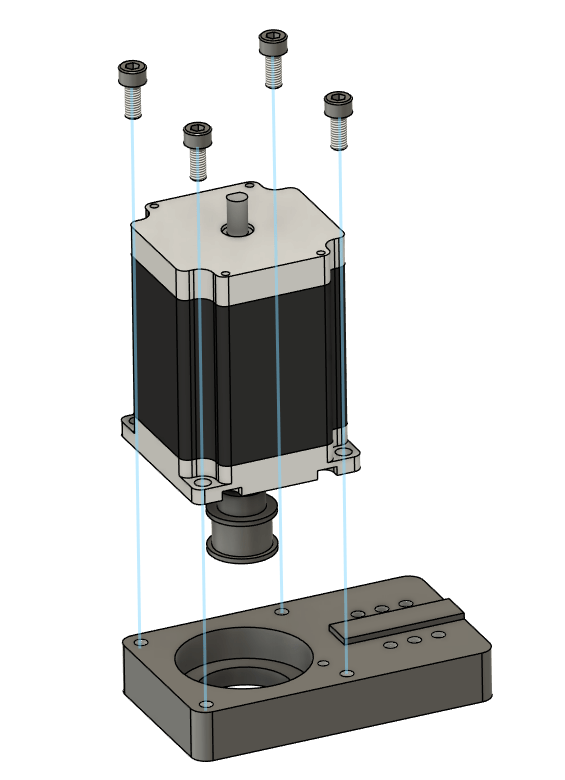 Take the last Nema 23 Motor and attach it to the J1 Motor Mount Plate using 4x M5x12 socket head bolts